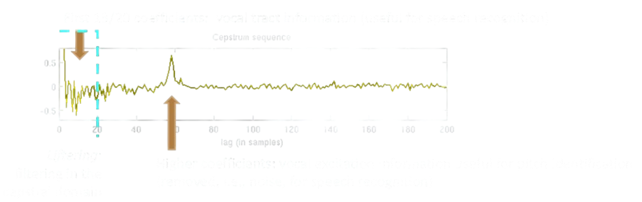 Quindi applicando un filtro low-pass al cepstrum si riesce a ricavare il filtro applicato dalla cassa di risonanza e conseguentemente il fonema generato, mentre il rapporto tra il rateo di campionamento e la quefrenza di picco mostra la frequenza fondamentale della voce, che può ad esempio essere utilizzata per riconoscere il sesso della persona.