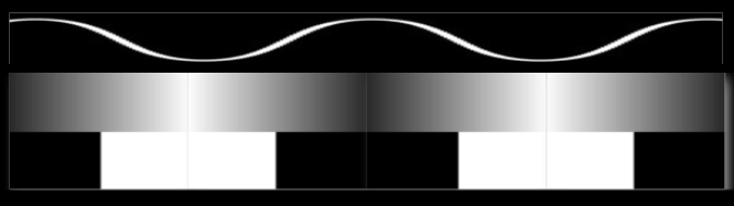 Prendendo per esempio questa immagine, si ha che 1 è nero, 0 è bianco. Qualunque segnale maggiore di 0.5 viene considerato nero, viceversa bianco. Se si aggiunge un rumore uniforme di intensità casuale tra 0 e 0.5, si ottiene un’immagine percettivamente simile a quella originale utilizzando soltanto due colori. Un concetto simile può essere applicato all’elaborazione audio.