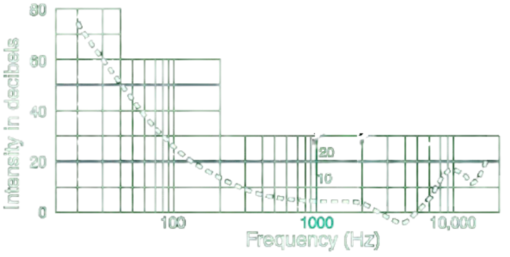 L’orecchio umano non è sensibile a tutte le frequenze in egual maniera. In particolare le frequenze a cui è più sensibile si trovano tra i 2000 e 4000 Hz, regione in cui tutte le Curve Isofoniche sono più o meno piatte.