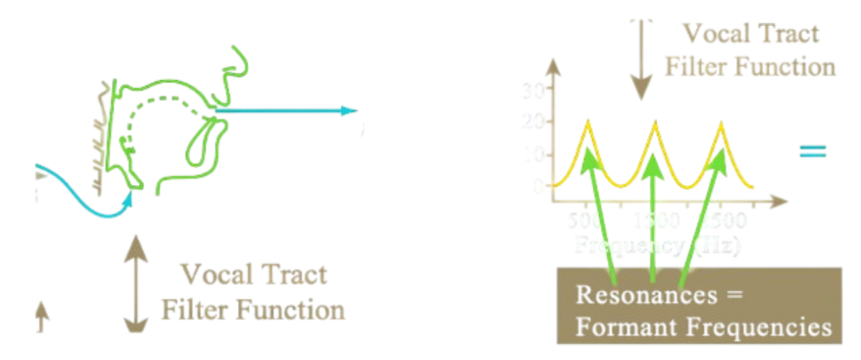 - Cassa armonica del tratto vocale che agisce da cassa di risonanza o filtro per dare una forma specifica al segnale (fonema), ampliandolo attorno a delle frequenze dette Formante.