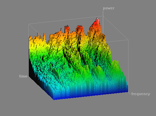 L’asse delle ascisse rappresenta il tempo, le ordinate rappresentano la frequenza. Si usa una codifica a colori o scala di grigi per rappresentare quali frequenze hanno intensità maggiore.