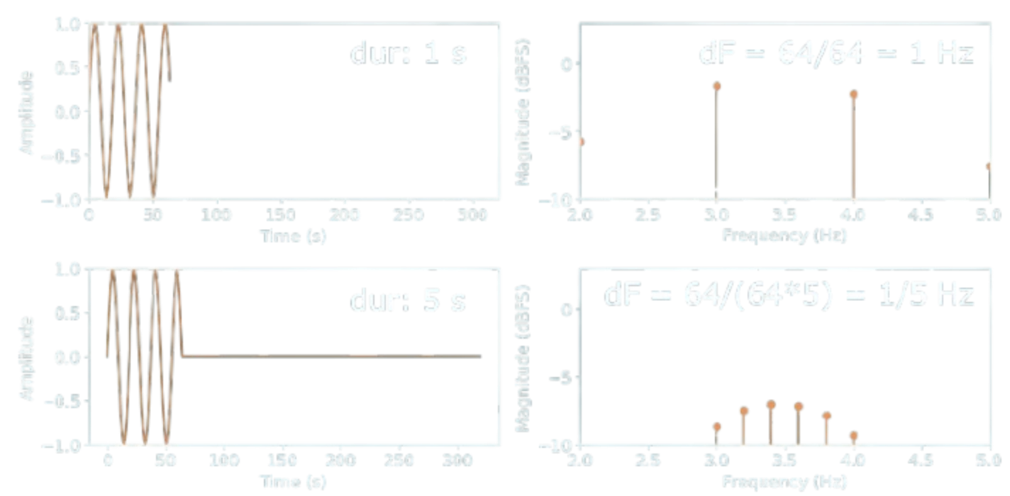 Nella frequenza si può notare che l’asse delle x (frequenze) viene scalato in quanto vi è un maggior numero di campioni, ma si può risolvere dividendo per dove 1 e 2 indicano il numero di campioni prima e dopo il padding.