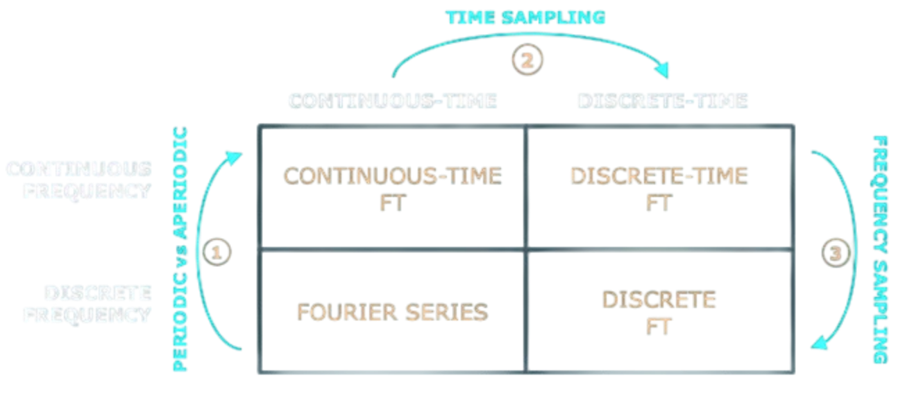Quando un segnale è continuo nel tempo, la trasformata di Fourier sarà discreta in frequenza, e viceversa.