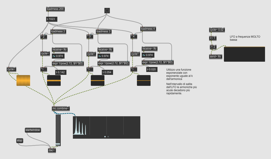 Creare una patch che realizzi il processo di sintesi descritto al punto precedente.