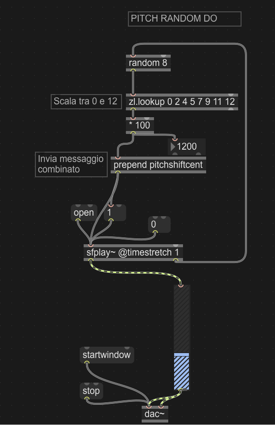 Realizzare un semplice processo che riproduca ripetutamente questo campione audio, ogni volta con una trasposizione diversa scelta a caso nella scala di Do maggiore: