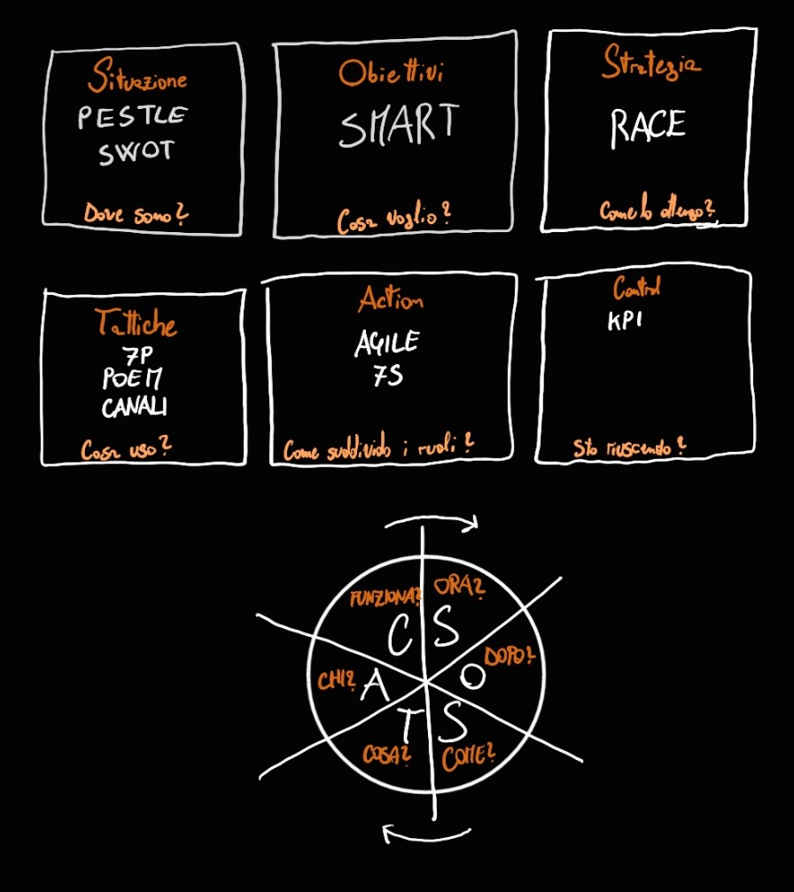 Il modello SOSTAC è un modello ciclico che consente di strutturare un piano digitale, ed è il modello standard utilizzato nel digital marketing.