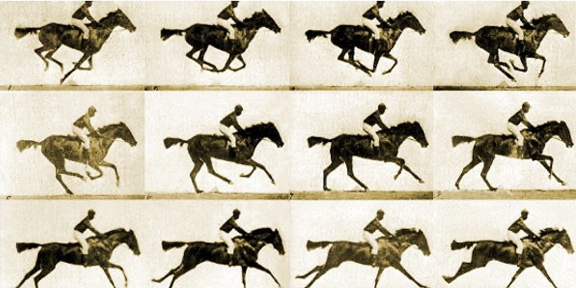 “Sallie Gardner at a Gallop”, realizzata da Eadweard Muybridge nel 1878.L’esperimento nacque per risolvere una disputa scientifica (e una scommessa) dell’epoca: si voleva capire se, durante il galoppo, un cavallo avesse mai tutte e quattro le zampe sollevate da terra contemporaneamente. L’occhio umano non era abbastanza veloce per confermarlo, ma le foto di Muybridge (in particolare il secondo e terzo fotogramma della prima riga) dimostrarono che accadeva davvero.